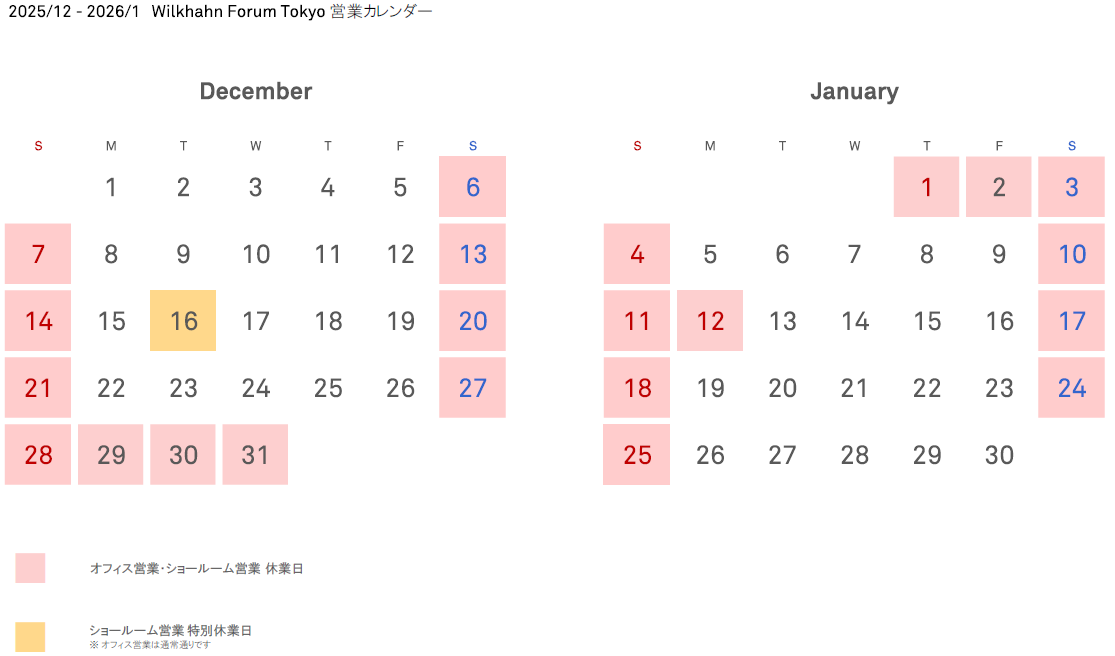 【年末年始期間のWilkhahn Forum Tokyo (ショールーム)・Wilkhahn Japan オフィス休業】